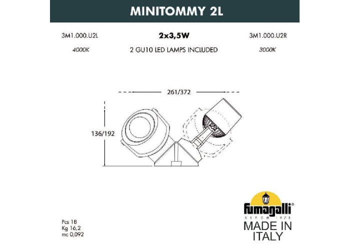 Прожектор уличный Minitommy 3M1.000.000.WXU2L от итальянской фабрики Fumagalli отлично подойдет для декорирования фасада зданий или уличных объектов, оформленных в стиле модерн. Основной материал изделия: акрил, основной цвет: прозрачный. Для оптимальной эксплуатации прибора производитель рекомендует использовать светодиодные лампы с цоколем GU10 и максимальной мощностью 4,5W. Чтобы выбрать и купить идеальный светильник с доставкой в Иваново, Люмина-Лайт предлагает Вам сравнить несколько понравившихся приборов или воспользоваться помощью наших опытных менеджеров.